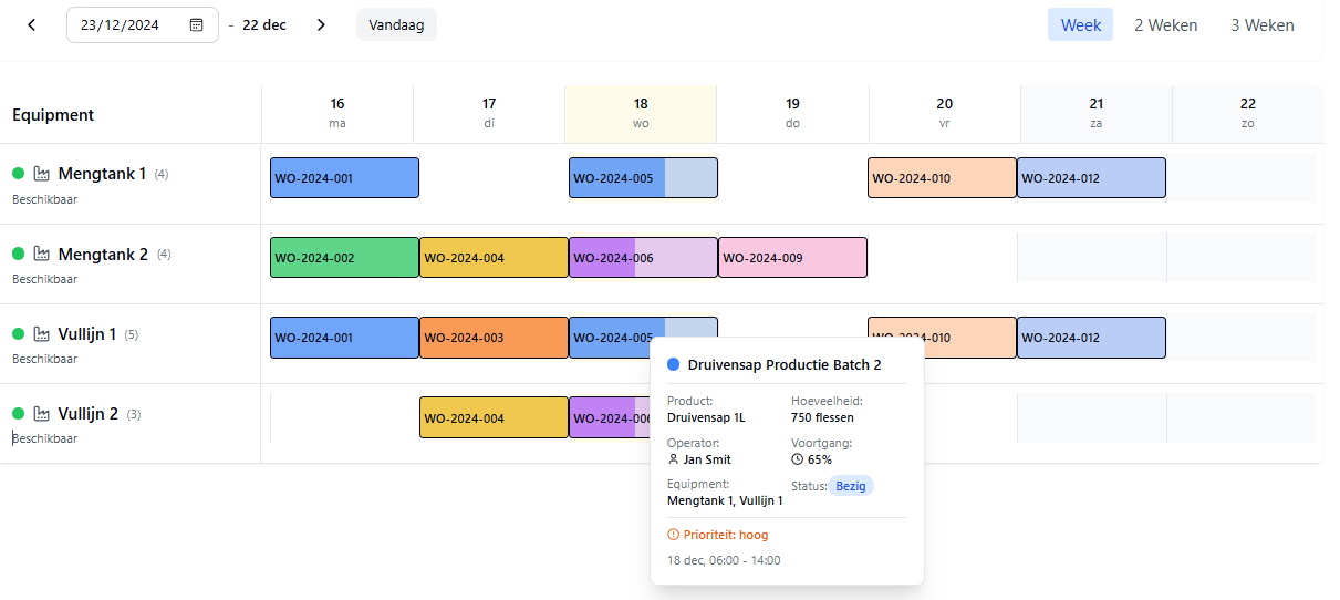 - Gantt-view per machine/lijn